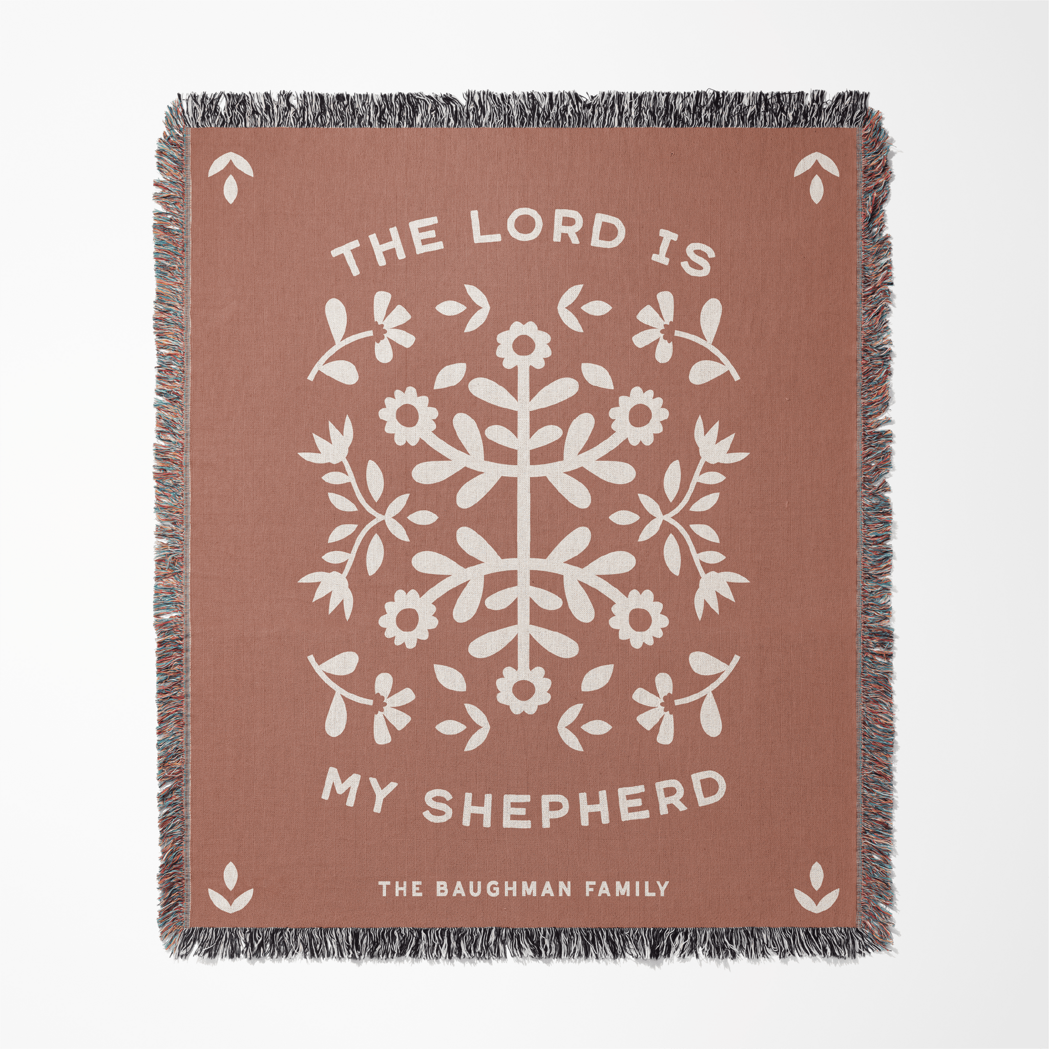 Rooted in the timeless promise of Psalm 23, The Lord Is My Shepherd woven blanket is a comforting reminder of God’s guidance, care, and presence through every season. Designed with a soft, folk-inspired floral motif, this piece feels both meaningful and beautifully at home in everyday life.
