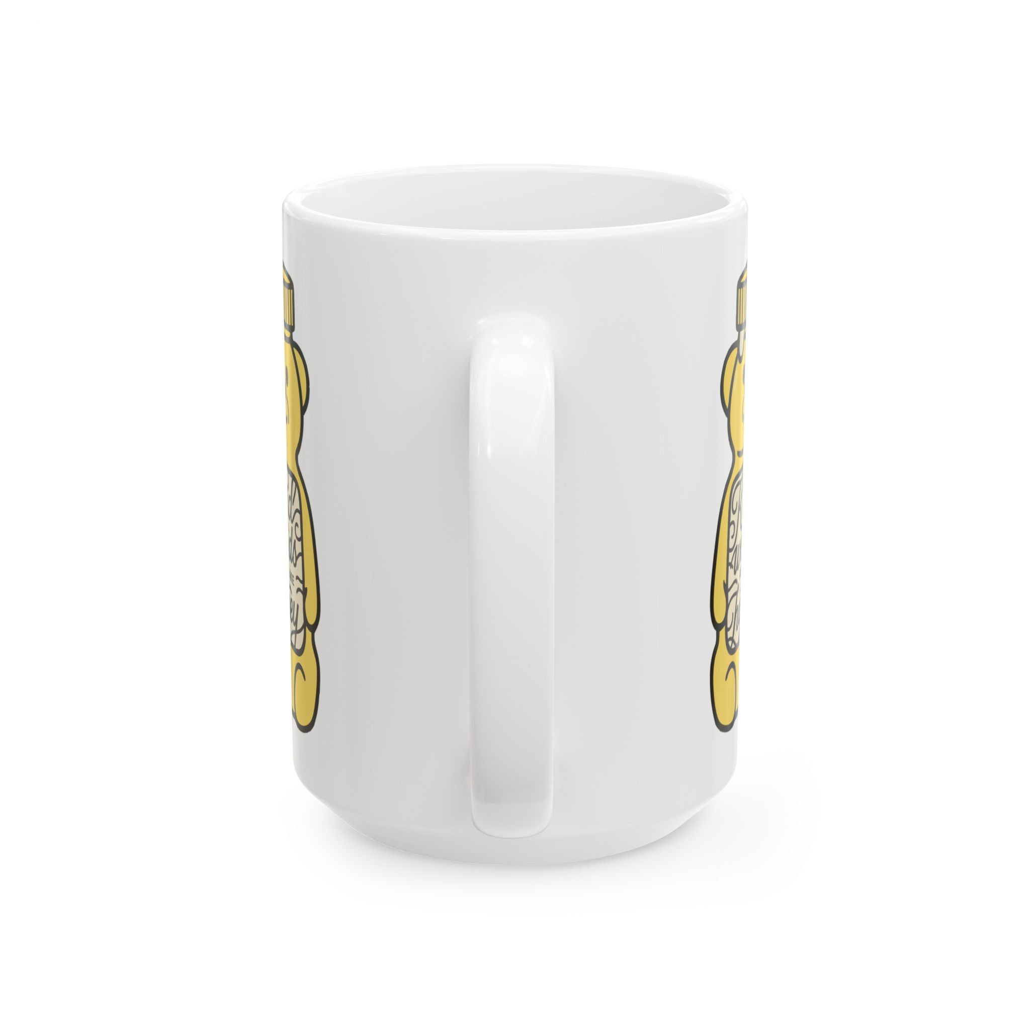 Crafted from durable white ceramic with a glossy finish, this mug is available in 11oz and 15oz sizes. It’s microwave- and dishwasher-safe, lead- and BPA-free, and sure to bring a smile with every sip.