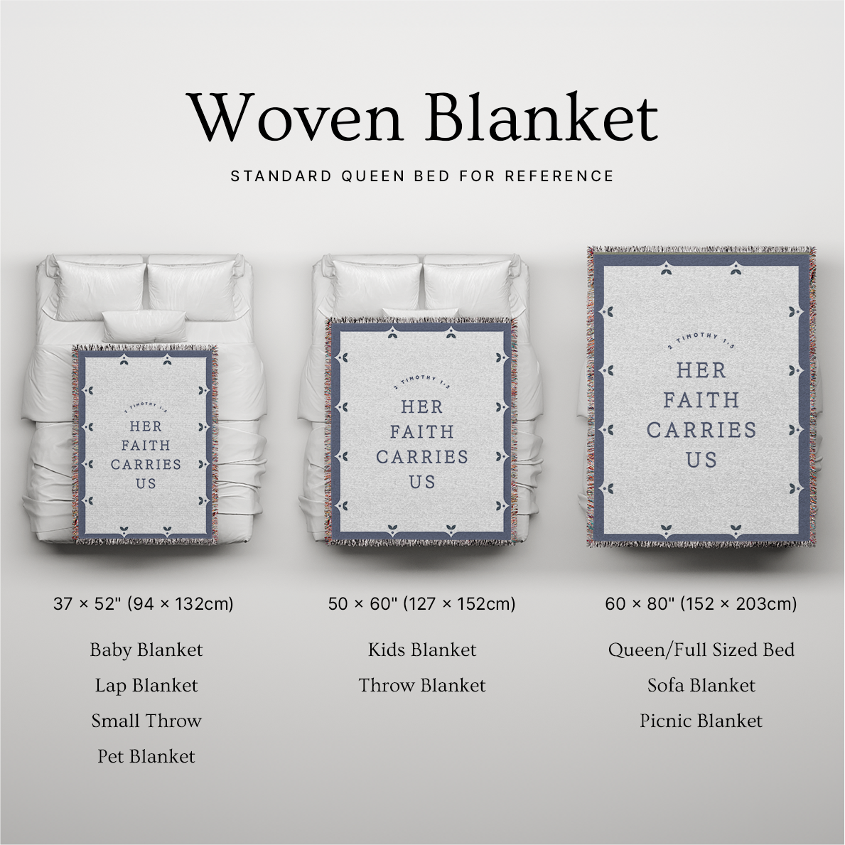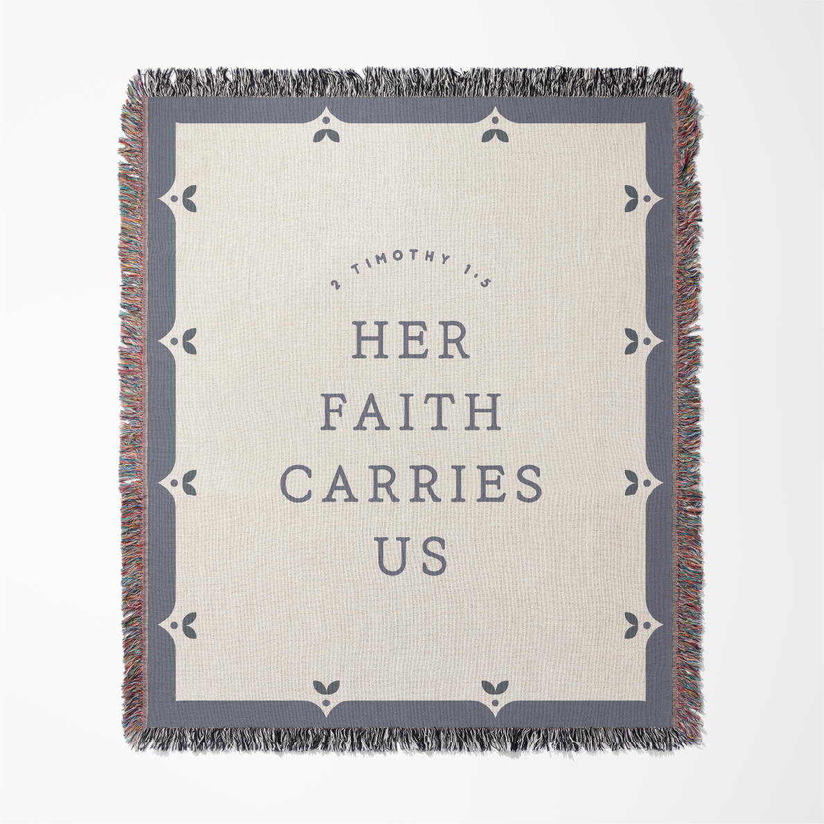 The Her Faith Carries Us Woven Blanket is a tribute to the quiet strength of generational faith—the kind that steadies homes, nurtures hearts, and carries love forward through every season. Inspired by 2 Timothy 1:5, this design honors the enduring faith passed down through mothers, grandmothers, and faithful women whose trust in God shapes those around them.