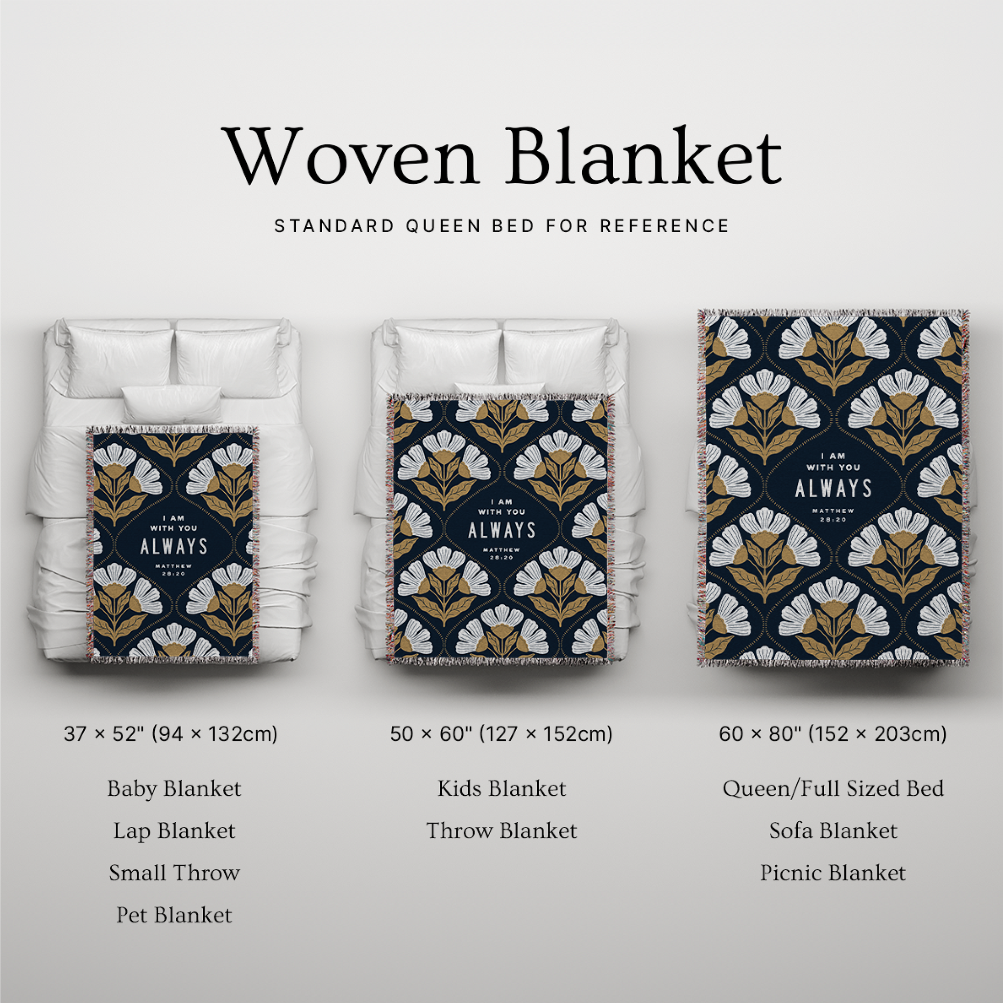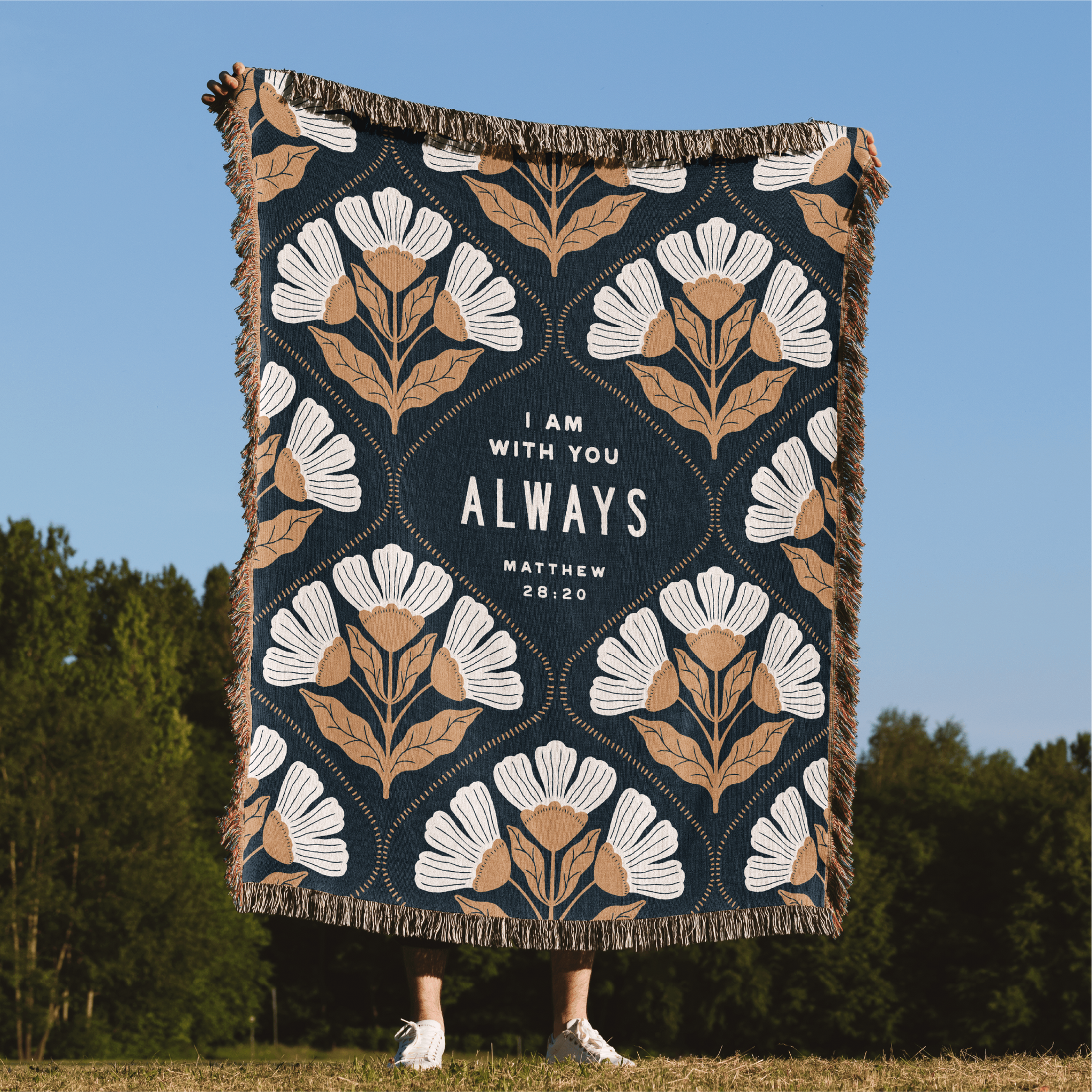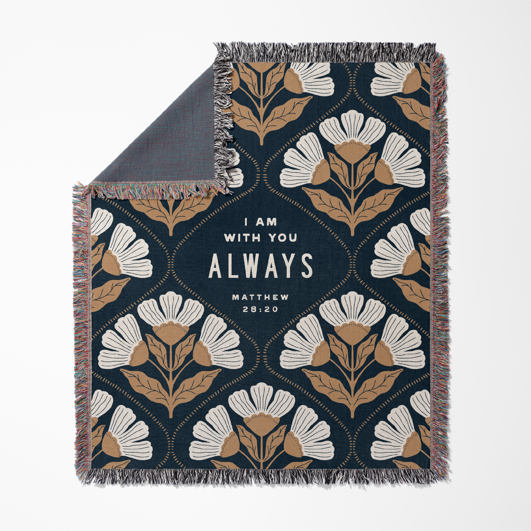 Rooted in the powerful promise of Matthew 28:20, the I Am With You Always Christian woven blanket offers a steady reminder of God’s presence through every season. Designed to bring comfort, reassurance, and faith into your home, this Scripture-inspired piece reflects the enduring truth that you are never alone.