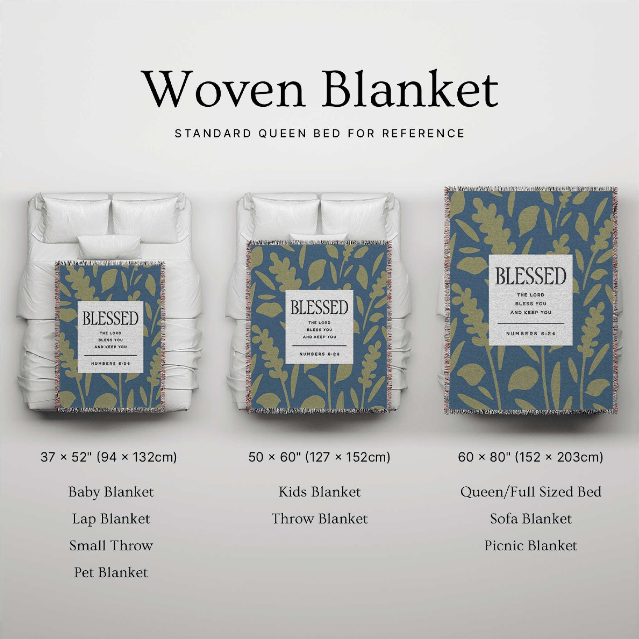 Designed with a calm, nature-inspired palette and woven (not printed) for depth and texture, this blanket brings warmth not only to your home, but to the heart. Personalization is available to add a name or meaningful detail, transforming this piece into a one-of-a-kind keepsake — or it can be enjoyed just as beautifully without customization.