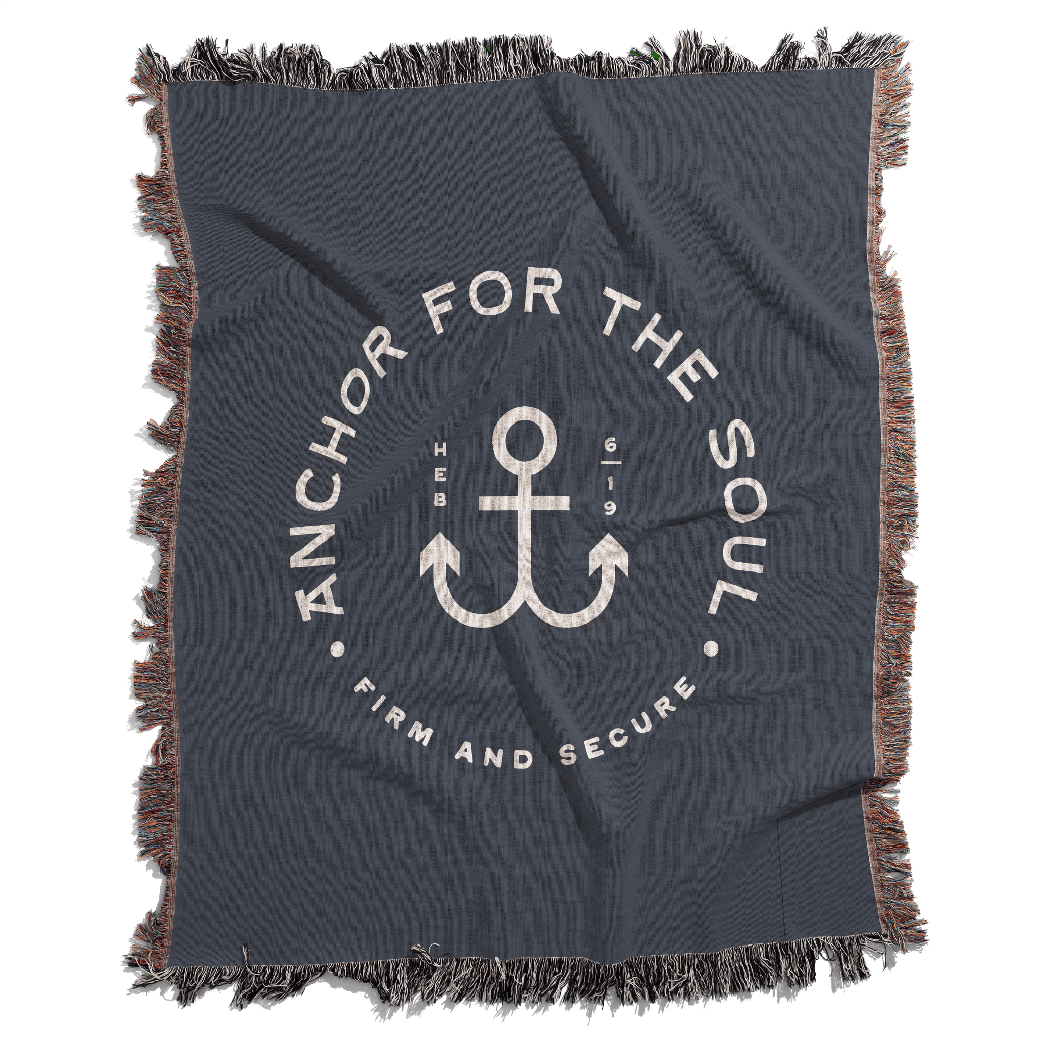 Featuring a simple anchor motif and calm, deep blue tones, this blanket brings a sense of assurance and peace into any space. Whether draped over a chair, folded at the foot of a bed, or wrapped around you in moments of rest, it serves as a quiet reminder that your soul is held—firm and secure in Him.