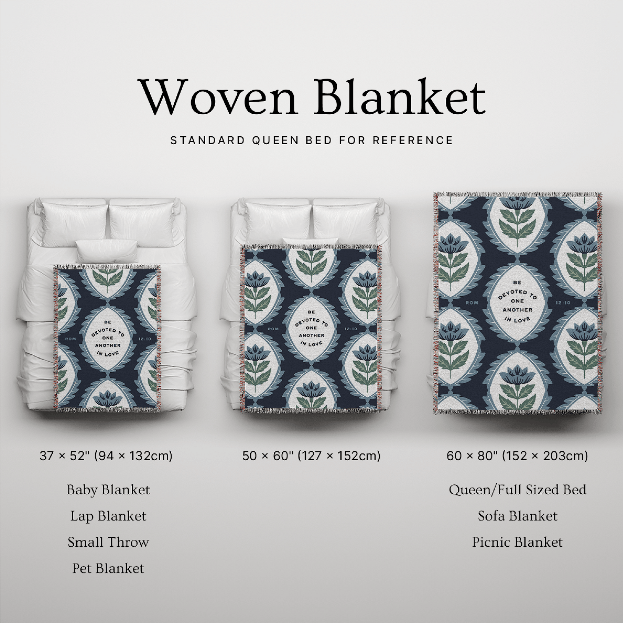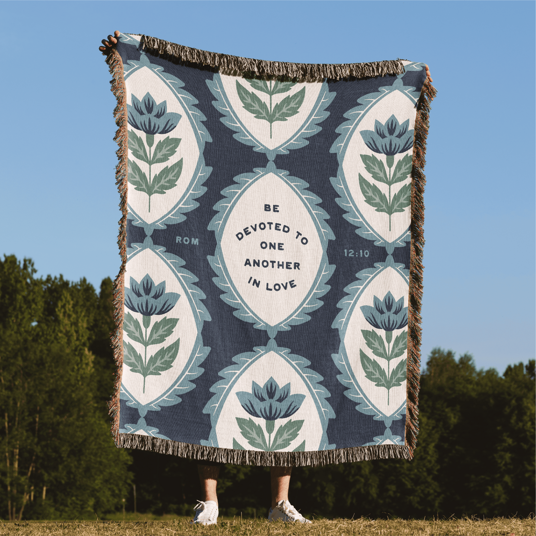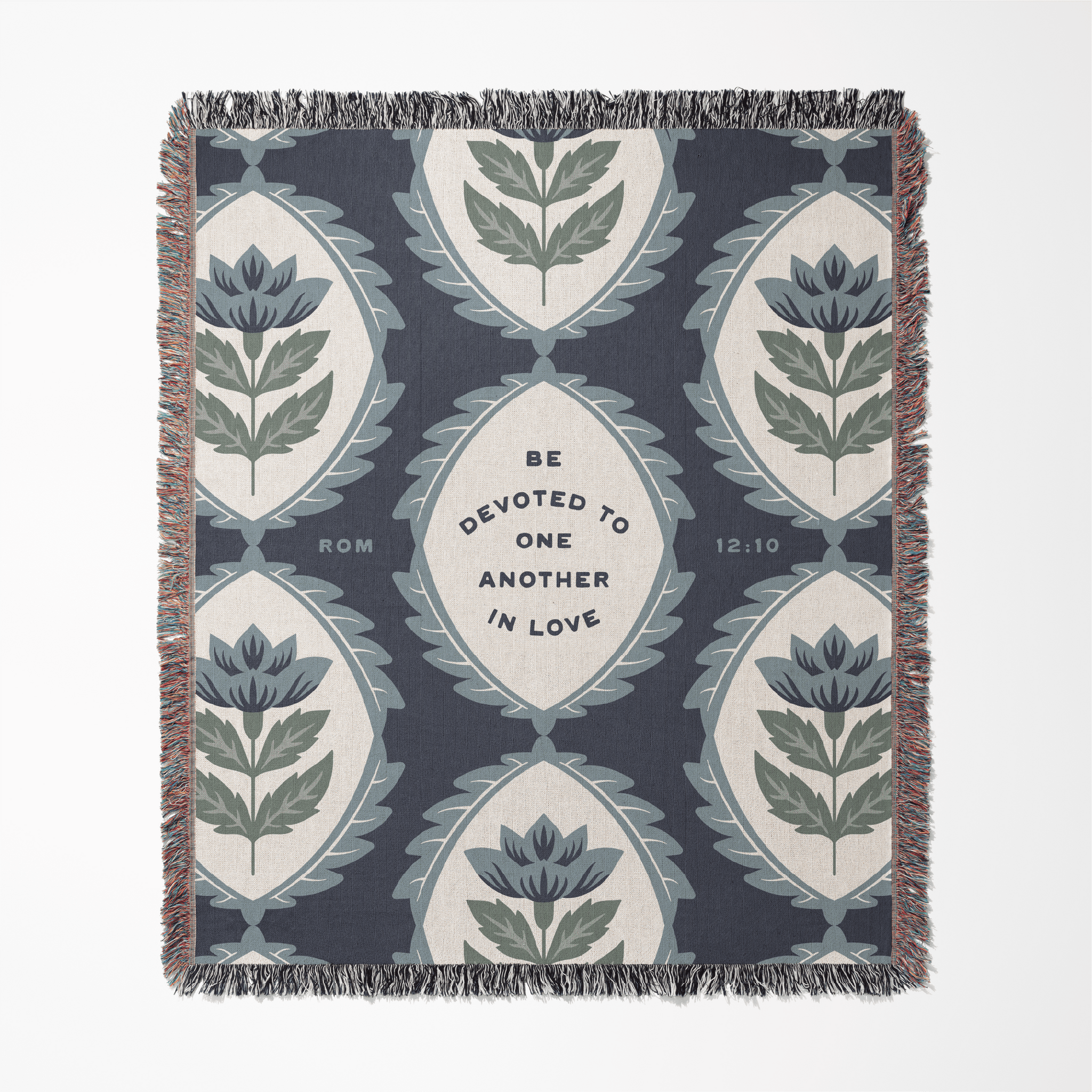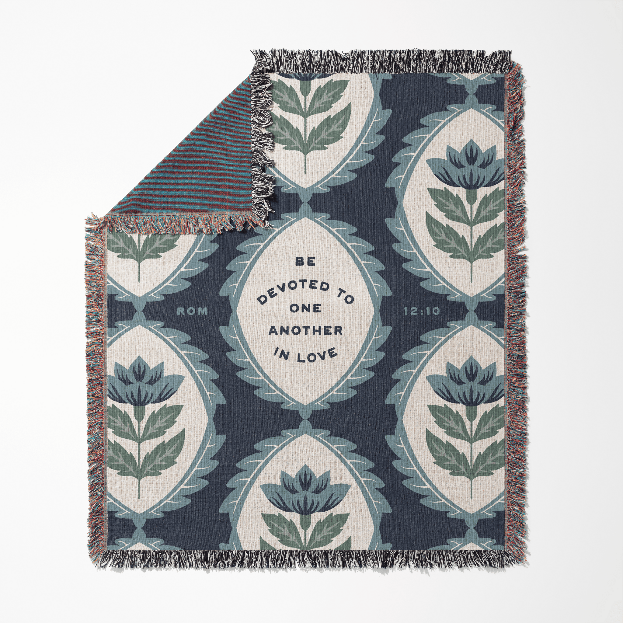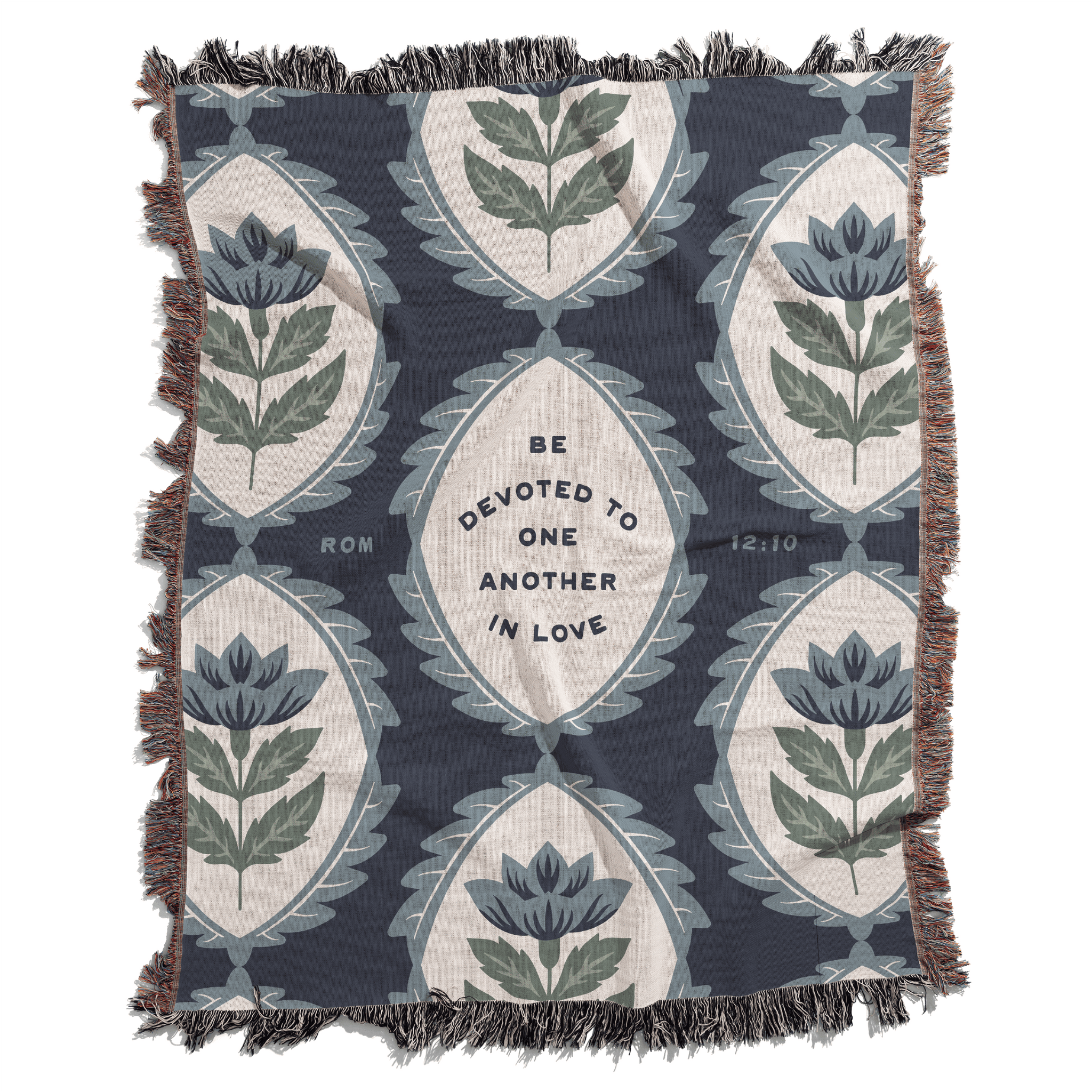 The Be Devoted to One Another in Love Woven Blanket is a timeless expression of steadfast love and faithful commitment. Featuring Romans 12:10, this faith-inspired woven blanket calls the home to something deeper — a life marked by devotion, kindness, and Christ-centered love.