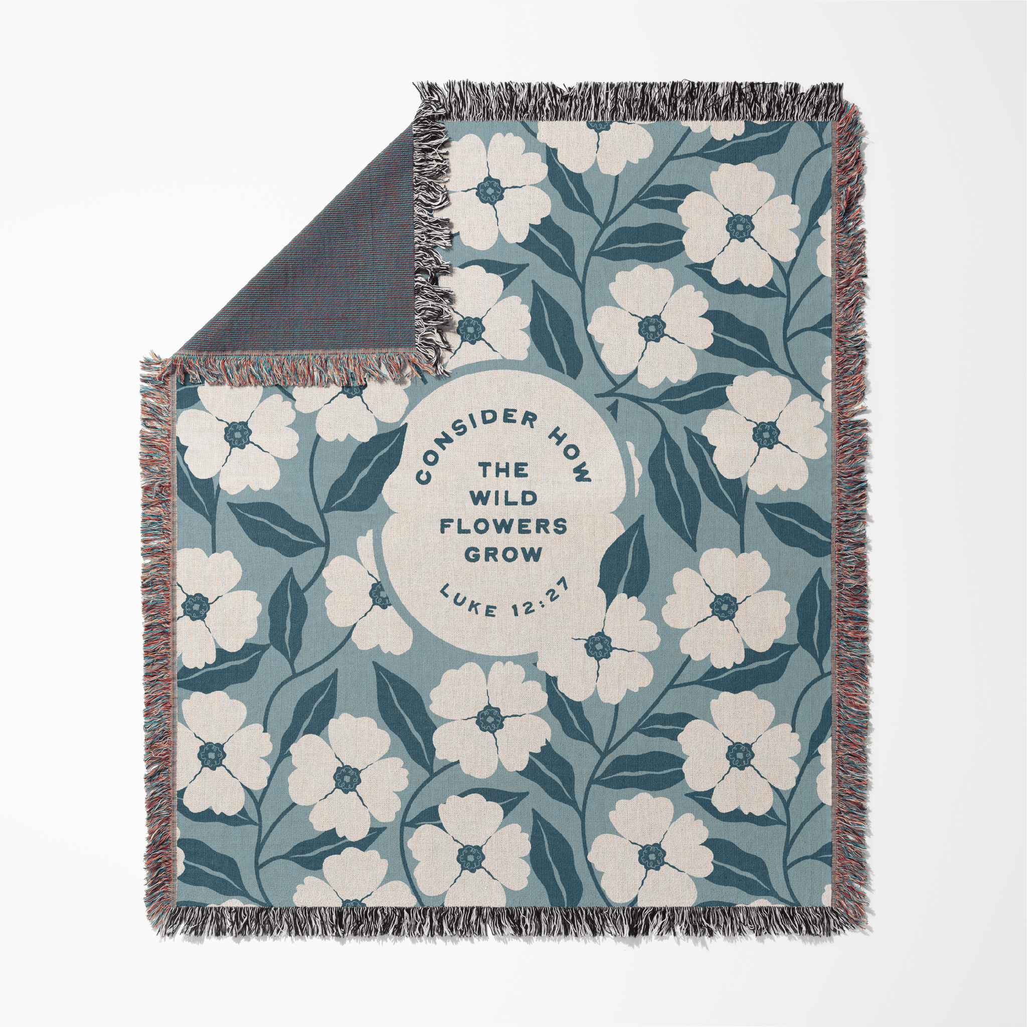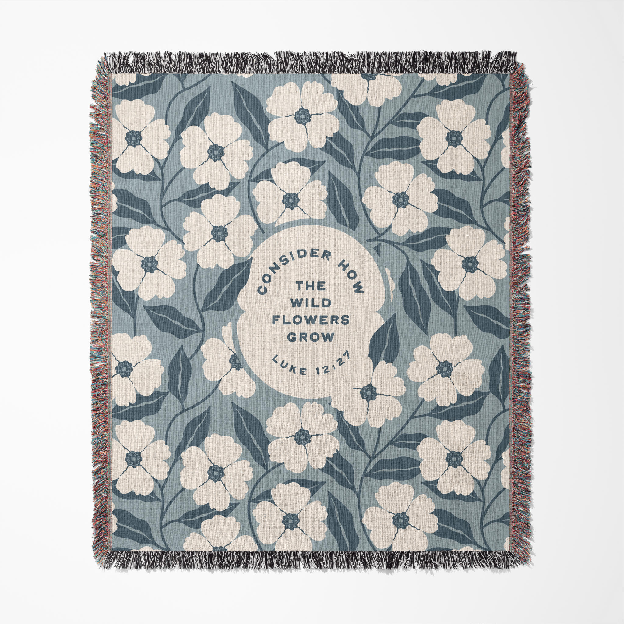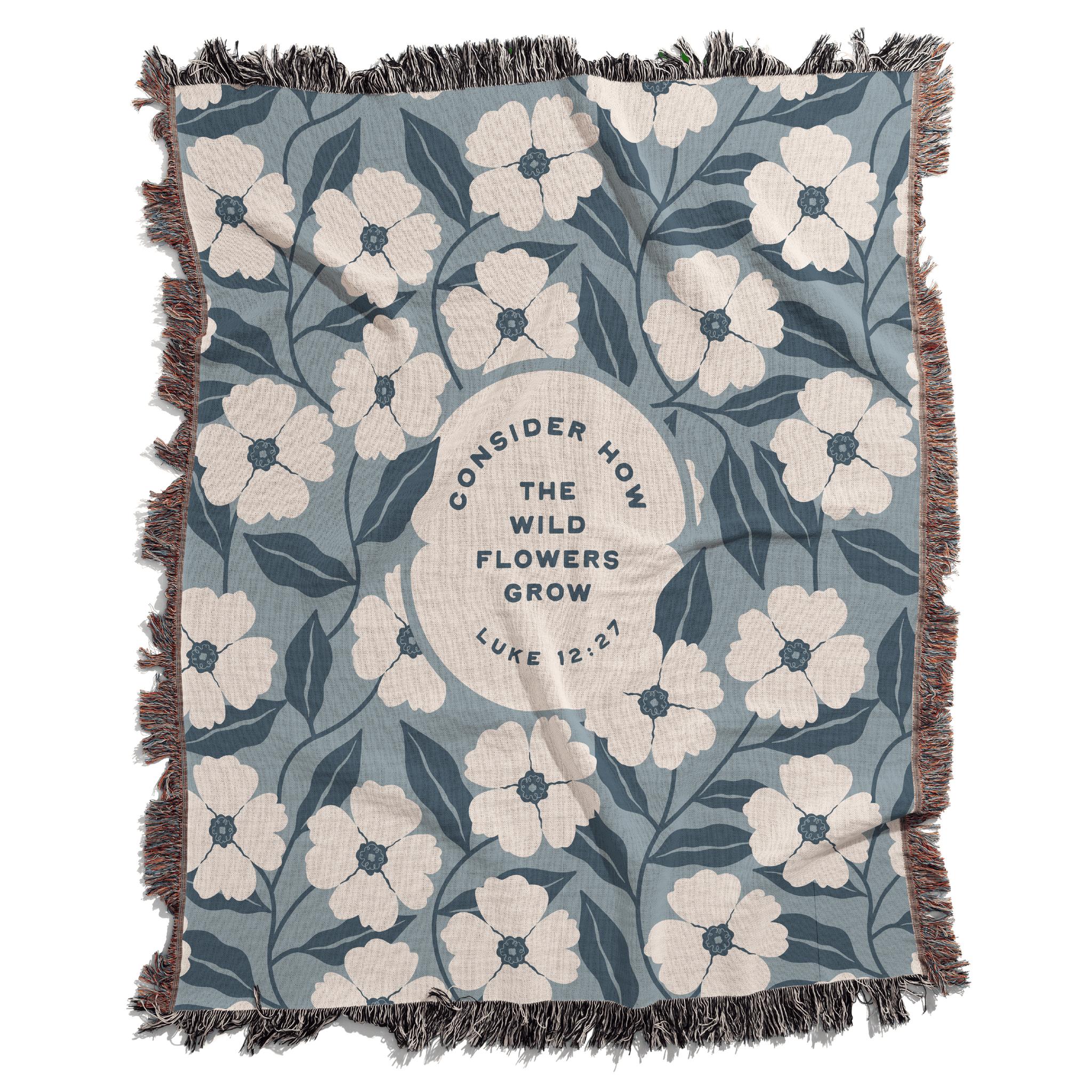 The Consider the Wild Flowers Woven Blanket is a soft reminder to release worry and rest in God’s faithful care. Inspired by Luke 12:27 — “Consider how the wild flowers grow…” — this faith-inspired woven blanket reflects the quiet trust woven into creation itself.