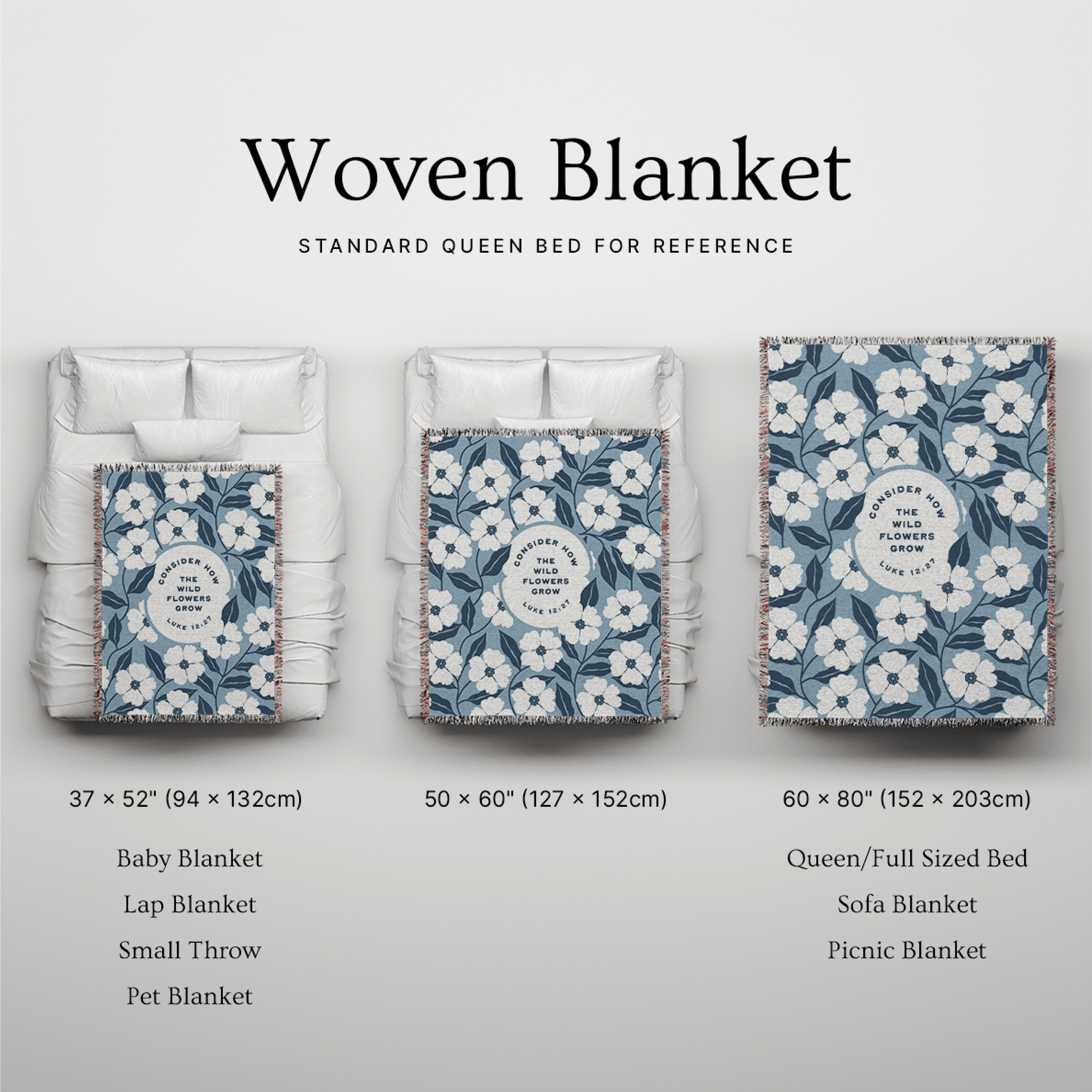 Whether draped across a bed, folded over a sofa, or styled in a reading nook, this Luke 12:27 blanket brings a calming presence to your home. It is a piece that gently speaks against anxiety and whispers trust.