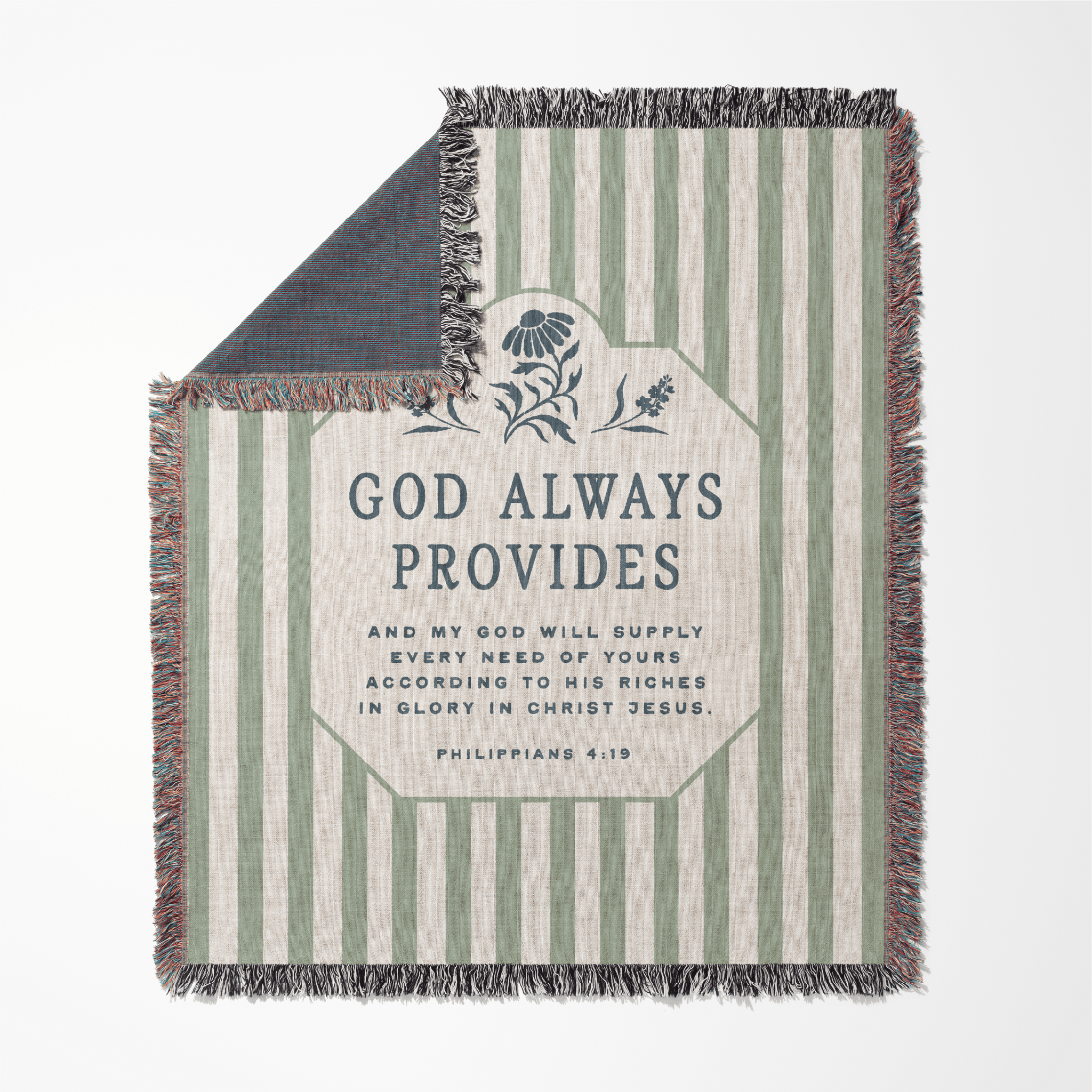 The God Always Provides Woven Blanket is a steady reminder of God’s faithful care in every season of life. Inspired by Philippians 4:19 — “And my God will supply every need of yours according to His riches in glory in Christ Jesus” — this faith-inspired woven blanket reflects the quiet assurance that we are never left without His provision.