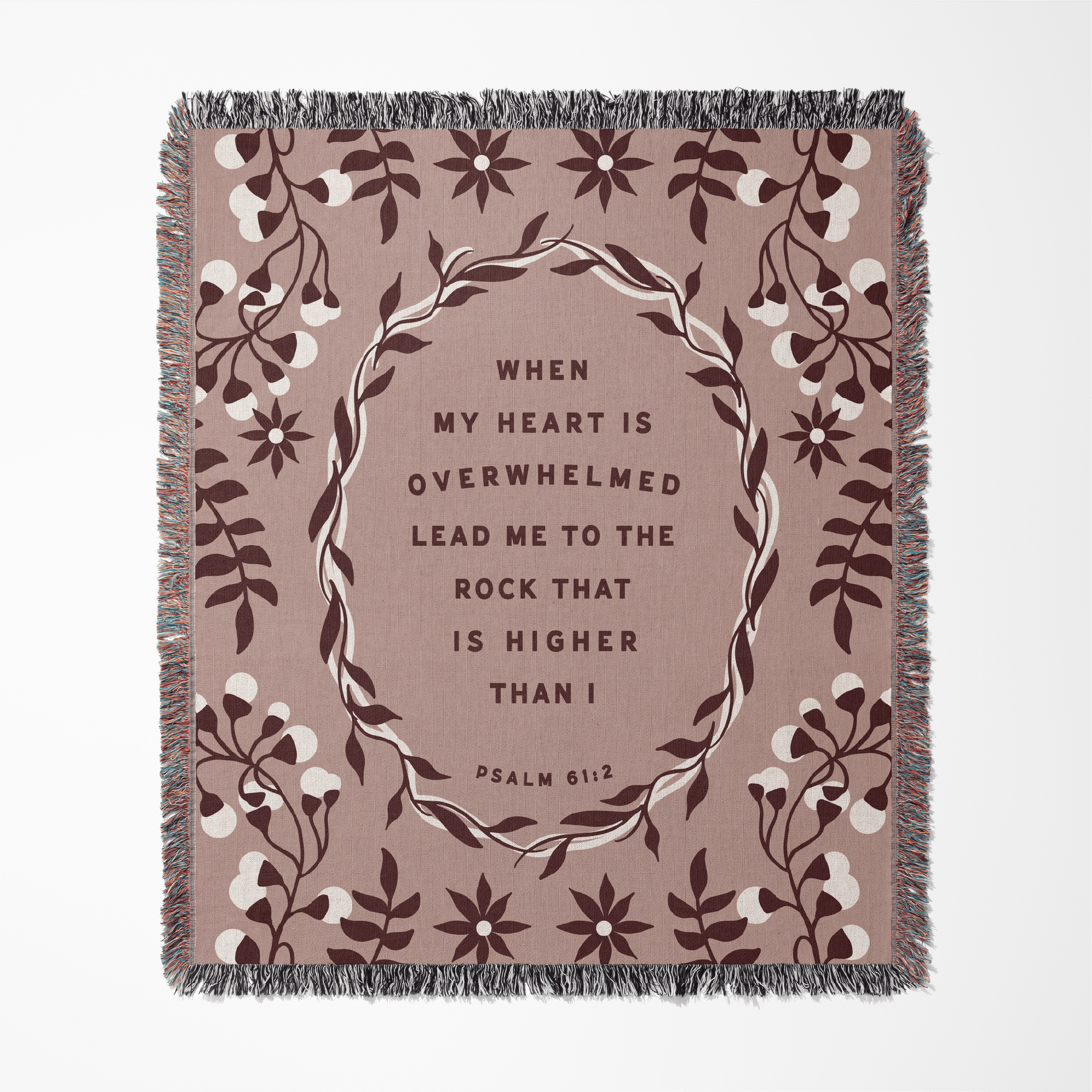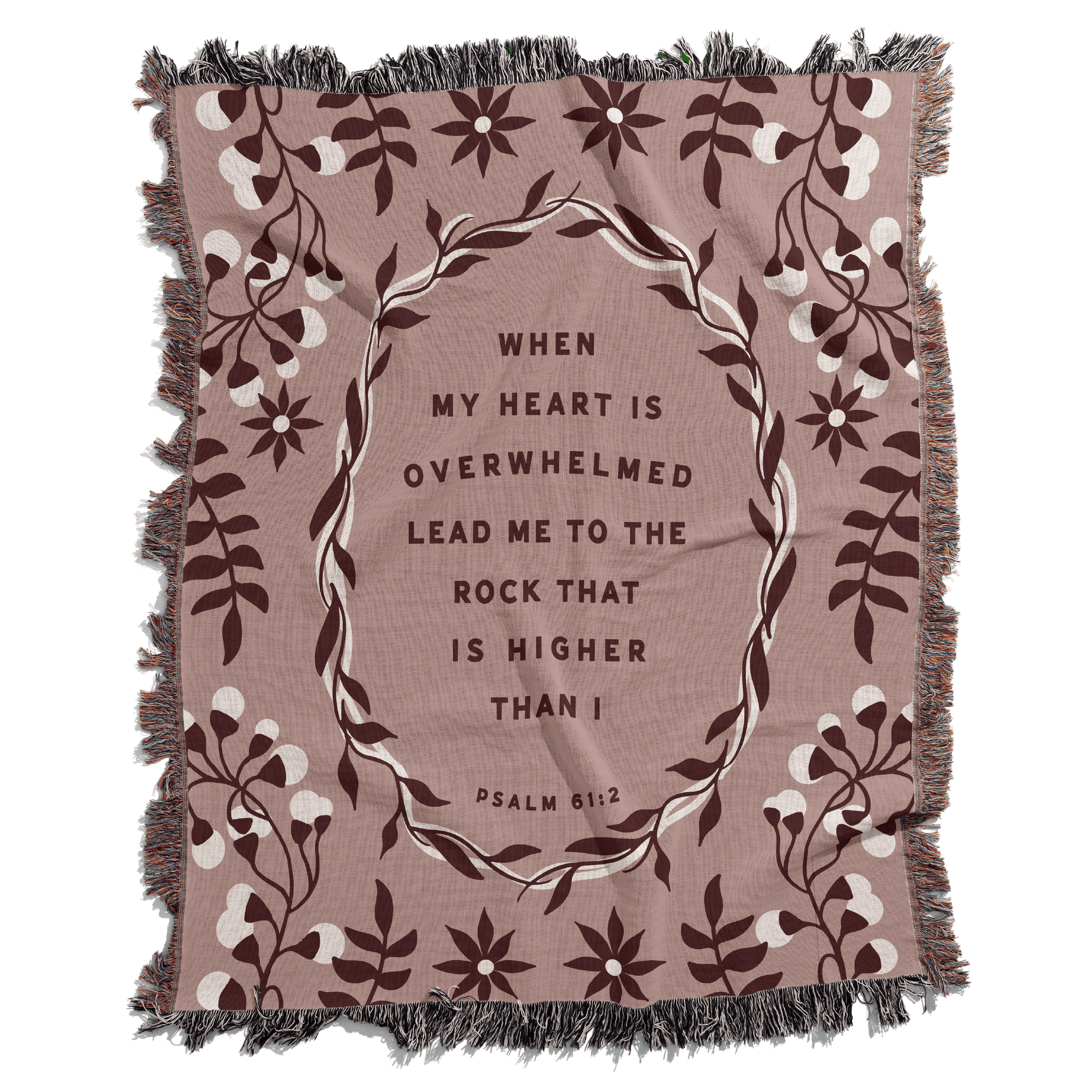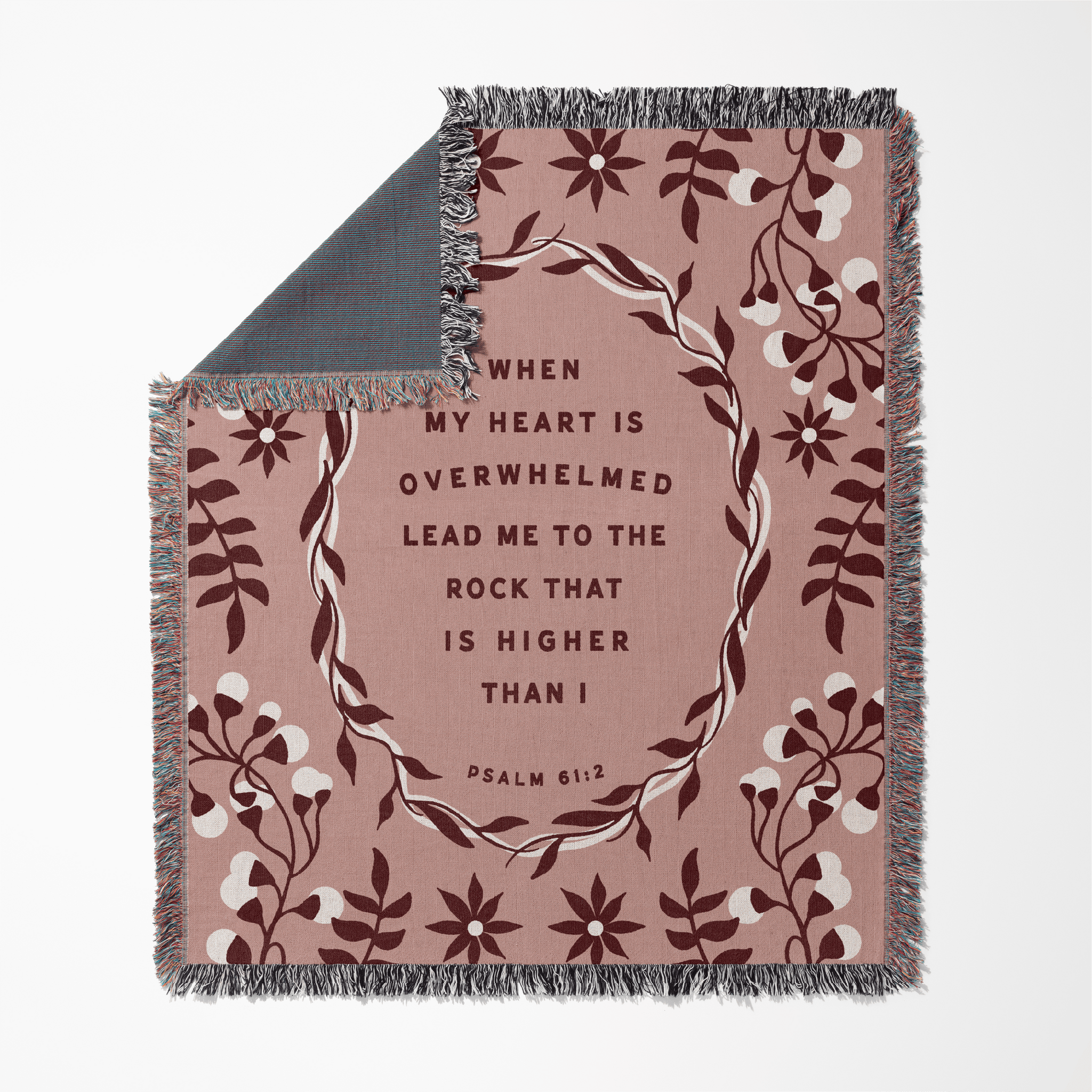 Inspired by the comforting words of Psalm 61:2, the Lead Me to the Rock Woven Blanket is a reminder to rest in God’s strength when life feels overwhelming. This verse speaks to moments when the heart feels heavy and the soul longs for steady ground—pointing us back to the One who lifts us higher.